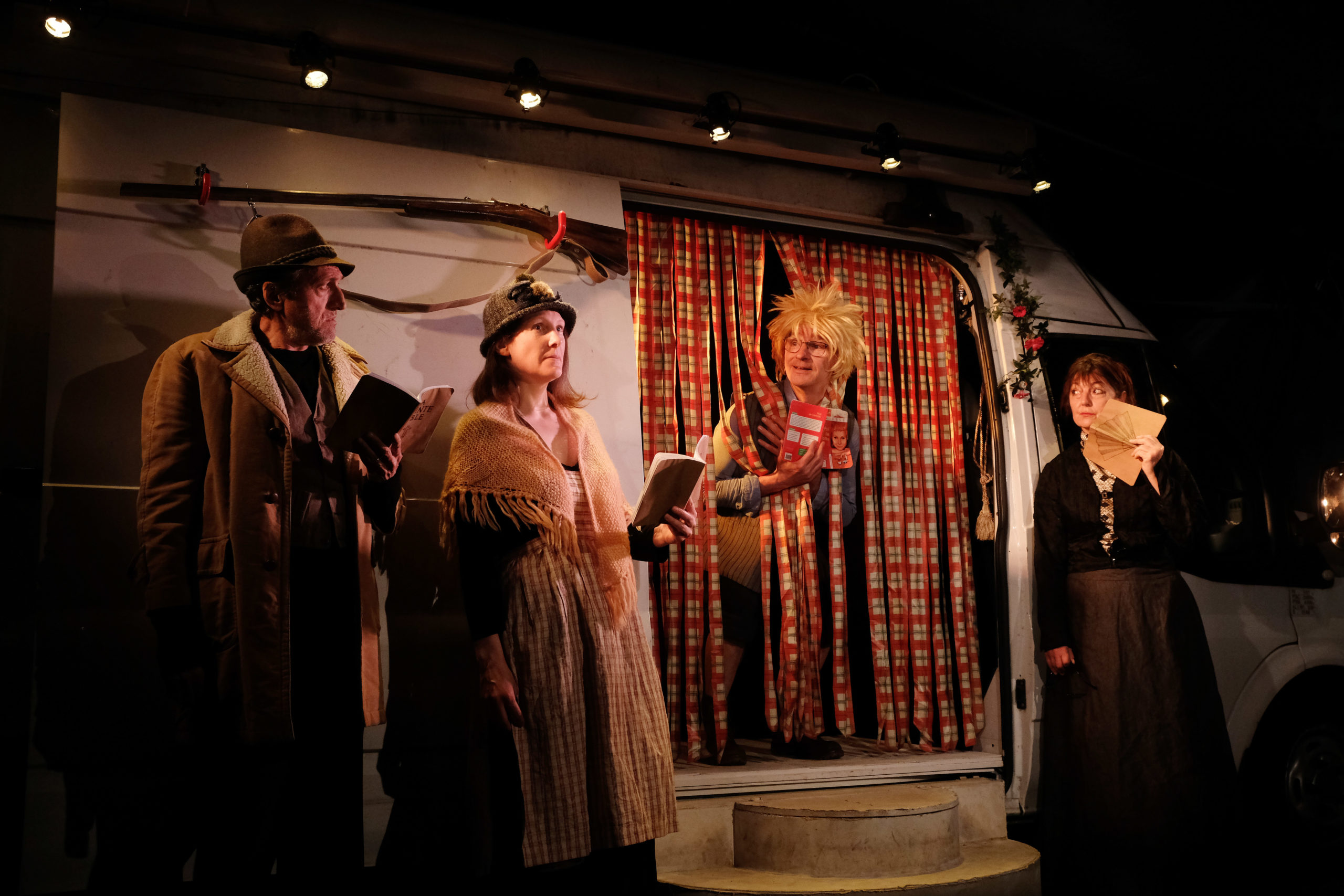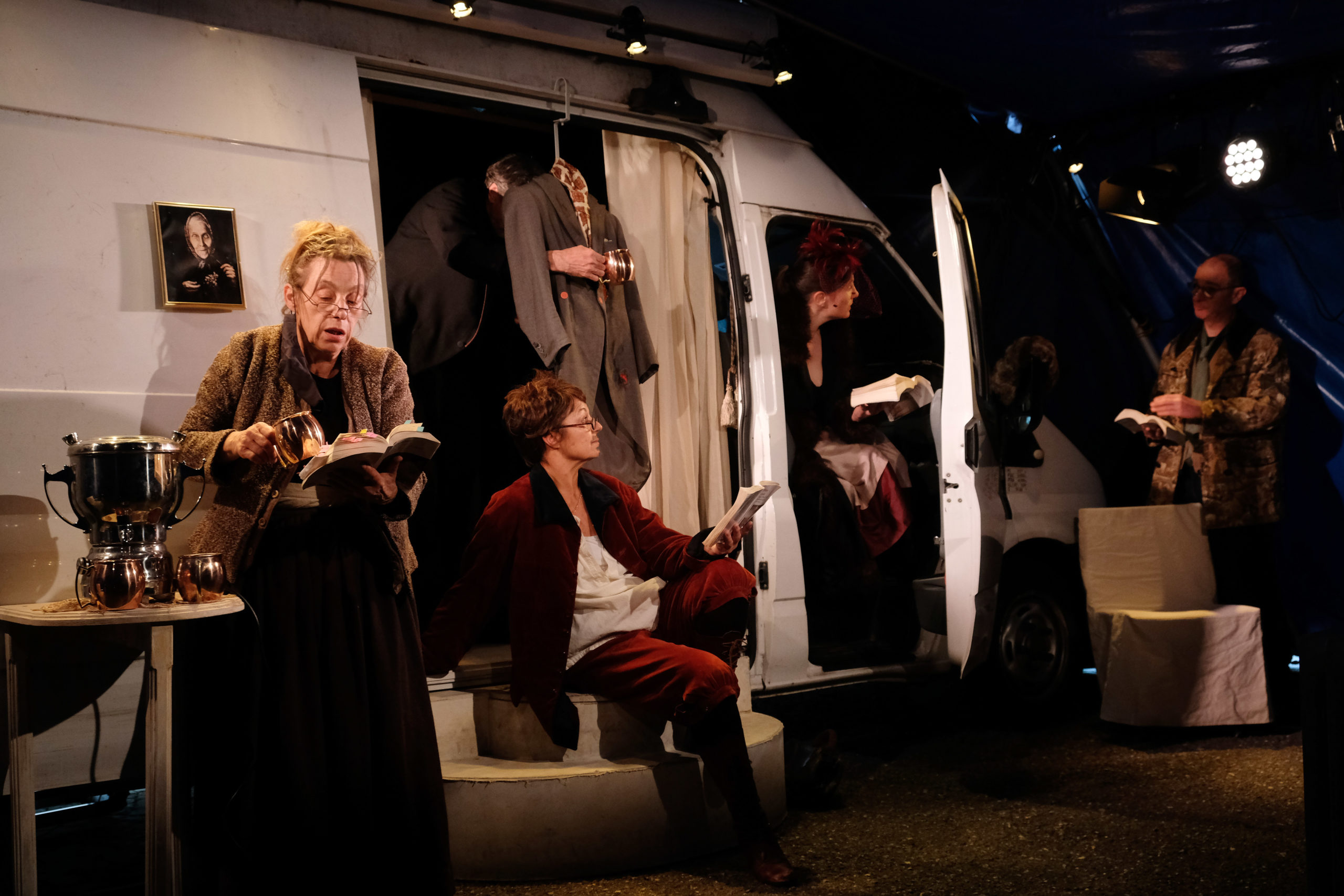 Il s’agit d’offrir 3 pièces du répertoire tirées de la Bibliothèque, qui traite de l’incommunicabilité, et sont présentées en alternance par une équipe de 5 comédiens texte en main où le livre devient un accessoire. Le jeu est de jouer à 5 tous les personnages de ces 3 pièces en trouvant les solutions théâtrales pour le faire…