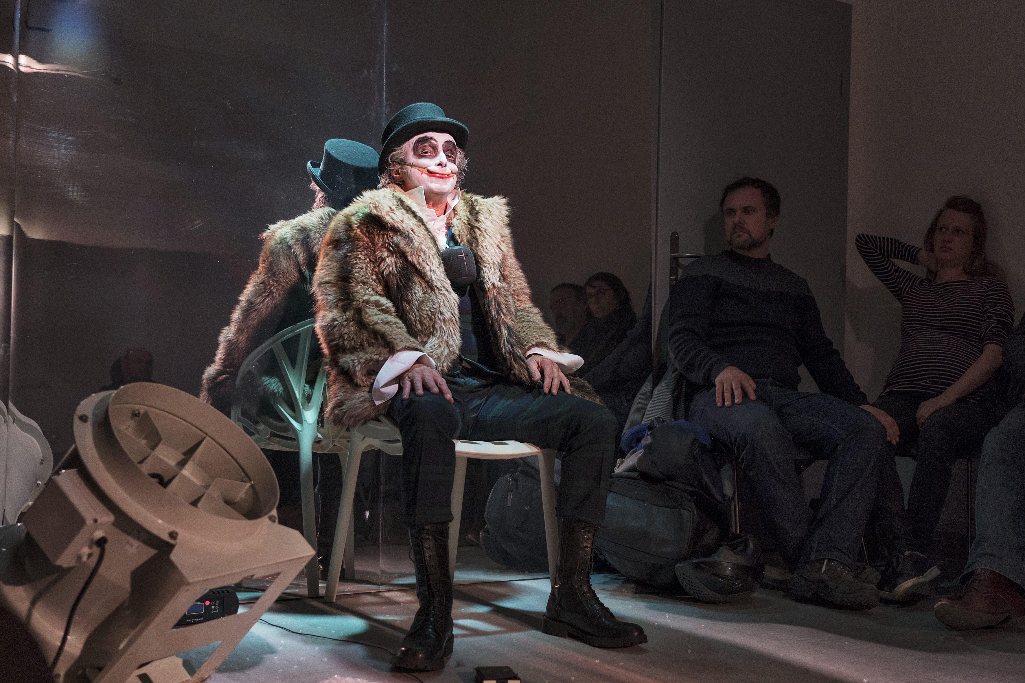 Ce qui m’intéresse, c’est le phénomène du rire noir, du rire pervers ou factice. Phénomène qui traverse d’un bout à l’autre l’œuvre de Hugo. Parce qu’on y voit le peuple comme défiguré par son consentement tacite et forcé à un pouvoir tyrannique et usurpé, consentement ne pouvant se manifester de manière plus prenante que par la joie, le rire et le sourire : « Le meurt-de-faim rit, le mendiant rit, le forçat rit, la prostituée rit, l’orphelin, pour mieux gagner sa vie, rit, l’esclave rit, le soldat rit, le peuple rit ; la société humaine est faite de telle façon que toutes les perditions, toutes les indigences, toutes les catastrophes, toutes les fièvres, tous les ulcères, toutes les agonies, se résolvent au-dessus du gouffre en une épouvantable grimace de joie. »