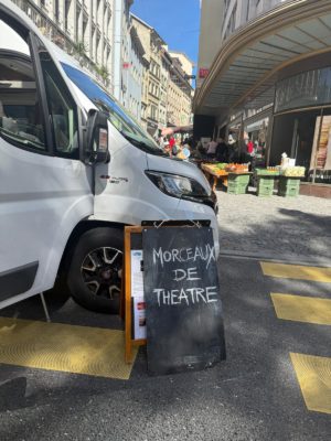 Sur les places de Marché, cet automne, nous vous offrons, sous notre Camionnette T-âtre IBonillo, des Morceaux de Théâtre à prix libre, genre Fables de la Fontaine…