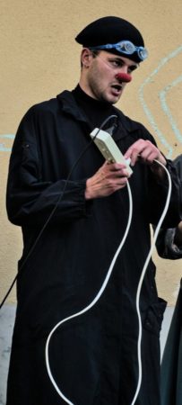 : Un infirmier ; un clown d'hôpital ; le businessman (marionnettiste)