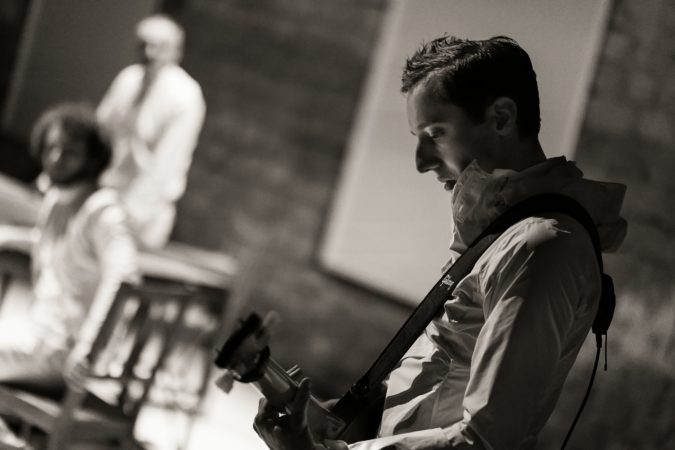 Travail au théâtre St Gervais avec des auteurs contemporains suisses de théâtre. Mise en jeu de Martine Paschoud sur un texte de Douna Loup, Mon Chien-Dieu.
